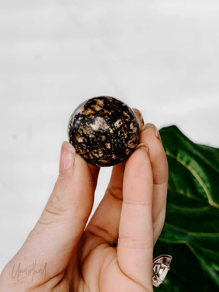 Rhodonite is also a calming stone, with energies used for easing anger as well as calming stress and anxiety. It is said to bring emotional balance, and as such bring confidence in one's life in many areas. Rhodonite is also a stone of contrasts. The pinks indicate energy that enhances love and is used in metaphysics to attract a good mate. This stone can help one have a passionate love that is also grounded or help mend a broken heart.