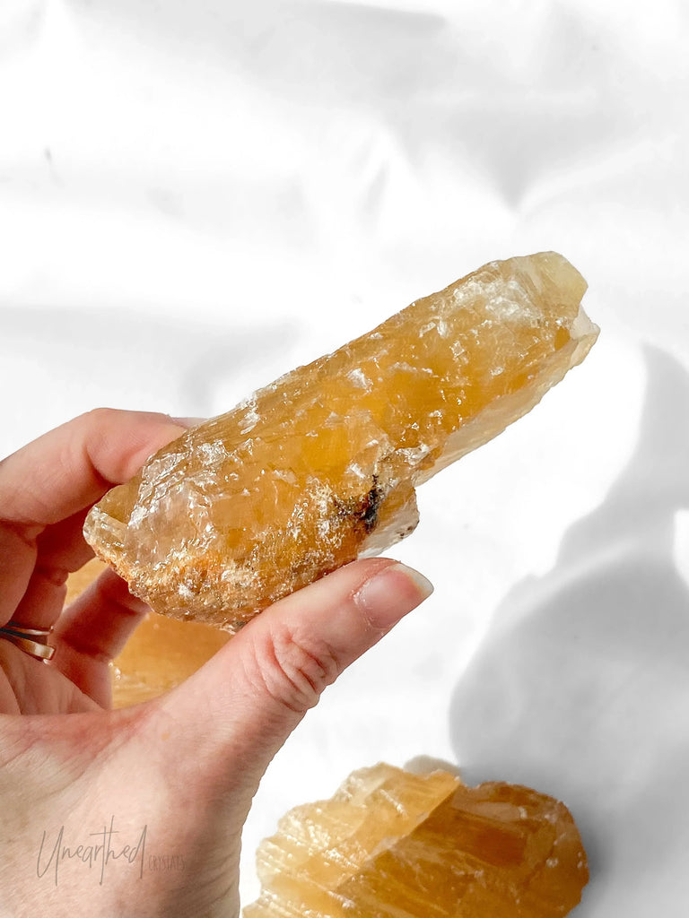 Metaphysically, Honey Calcite is a powerhouse for the Solar Plexus Chakra. It’s the stone that helps you step into your personal power, raise your vibration, and take action towards your dreams. If you’re feeling unsure of yourself or lacking confidence, this is the crystal you want in your corner to light up your inner fire.