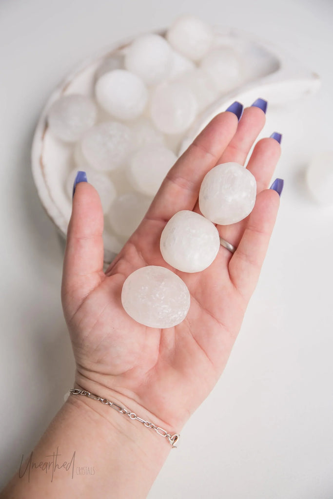 Spiritually, Selenite’s connection to the Moon means it’s always working to illuminate your path. Whether you’re meditating, manifesting, or simply vibing, Selenite is a bridge to your higher self and spiritual guides. Use it as a wand to cleanse your aura, place it by your bedside for sweet dreams, or keep it in your workspace to keep energy flowing smoothly.