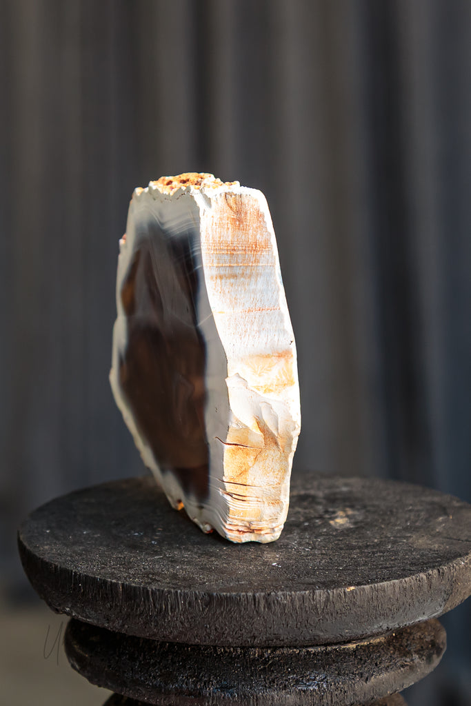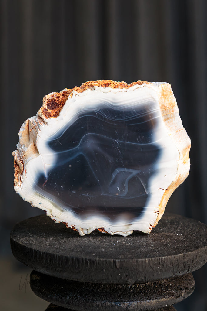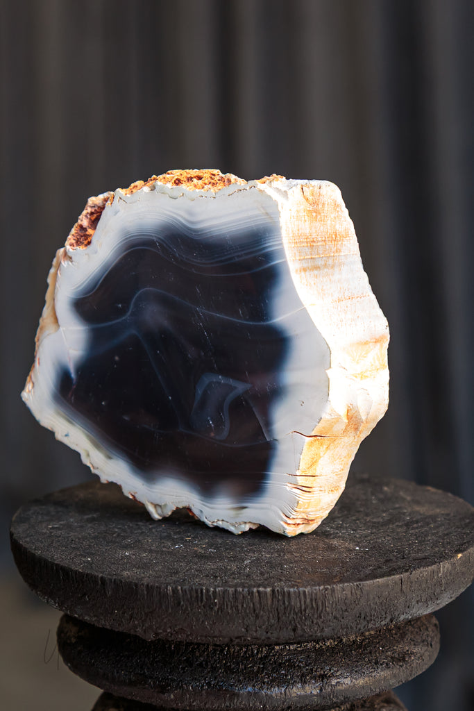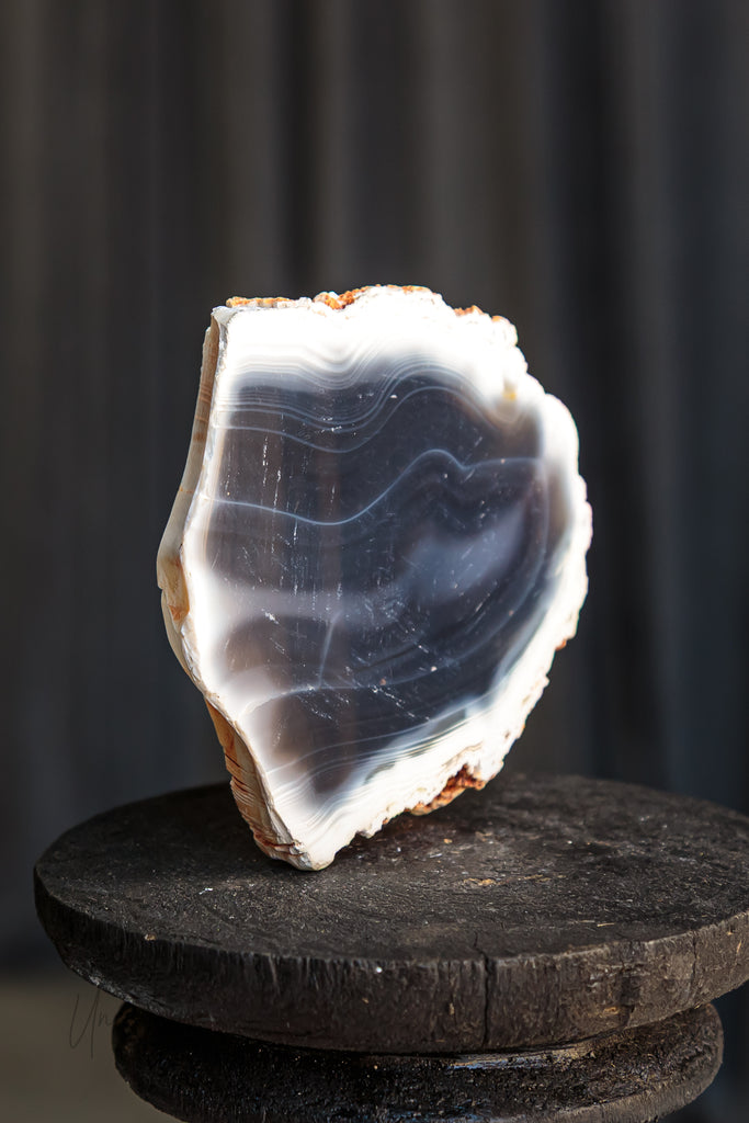 On the science side, Orca Agate is a type of banded Chalcedony, part of the Quartz family, with beautiful black and white patterns resembling the orca whale. Its unique aesthetic and calming energy make it a standout in any collection.