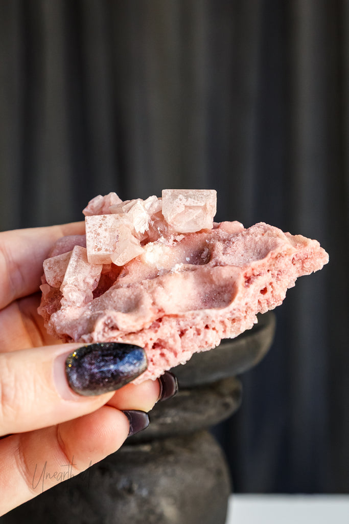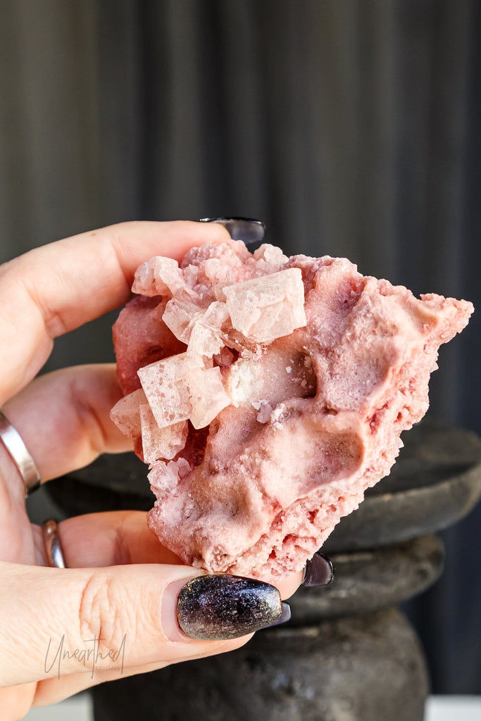 Pink Halite (from places like Searles Lake, California) is particularly nurturing—it helps you forgive, soften, and release with compassion. Clear or colourless Halite has more of a mental clarity and spiritual activation vibe, while Blue Halite (super rare!) works deeply on emotional trauma and inner vision.