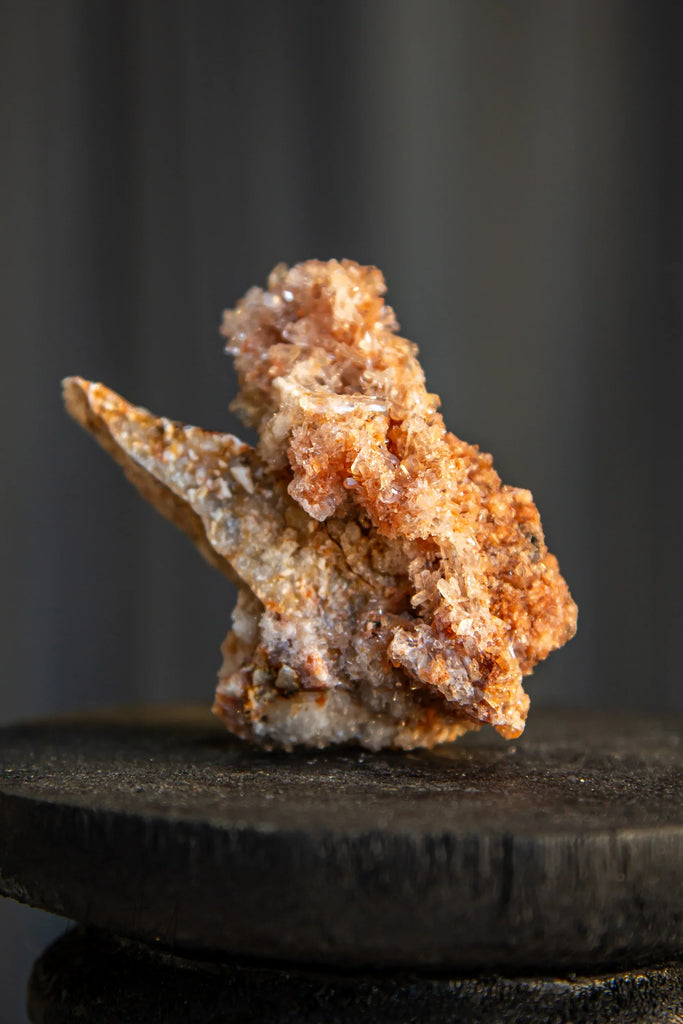 Creedite is a rare hydroxylhalide mineral typically found in hydrothermal veins. It often forms radiating crystal sprays in orange, purple, white, or colourless varieties. First discovered in Creede, Colorado (yep, thatās where the name comes from), itās now famously sourced in Mexicoāespecially the bright orange and violet clusters from Chihuahua. Its fragile, needle-like crystals are as delicate as they are dazzling, so handle with care!