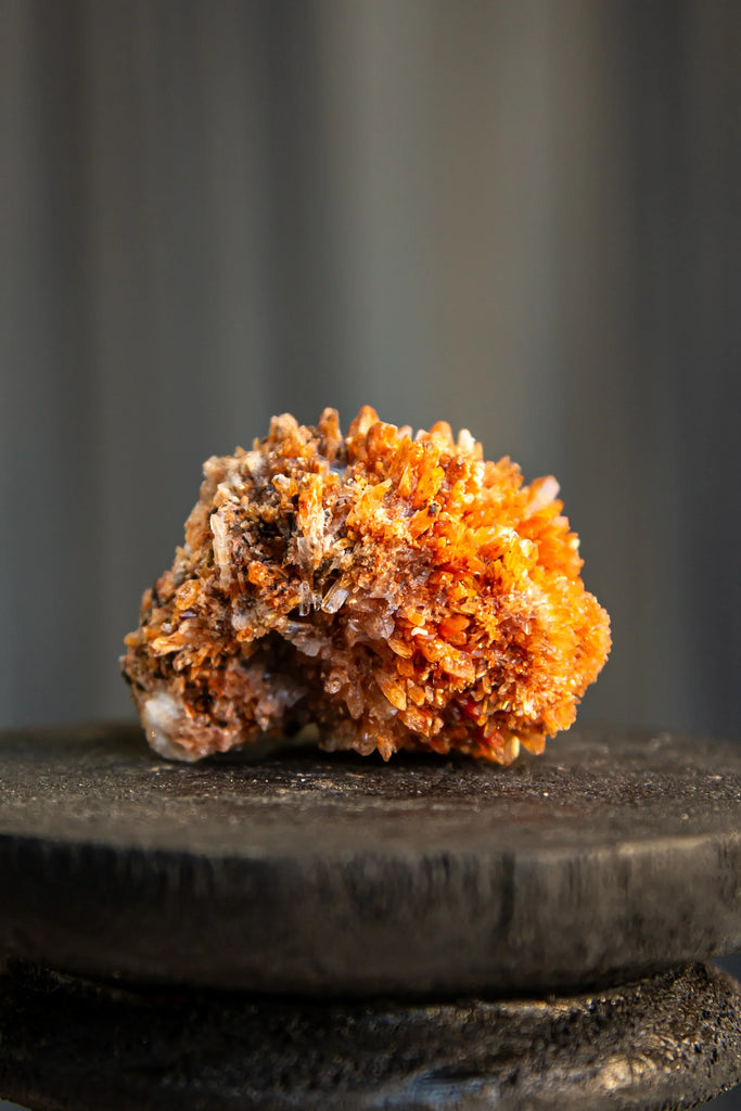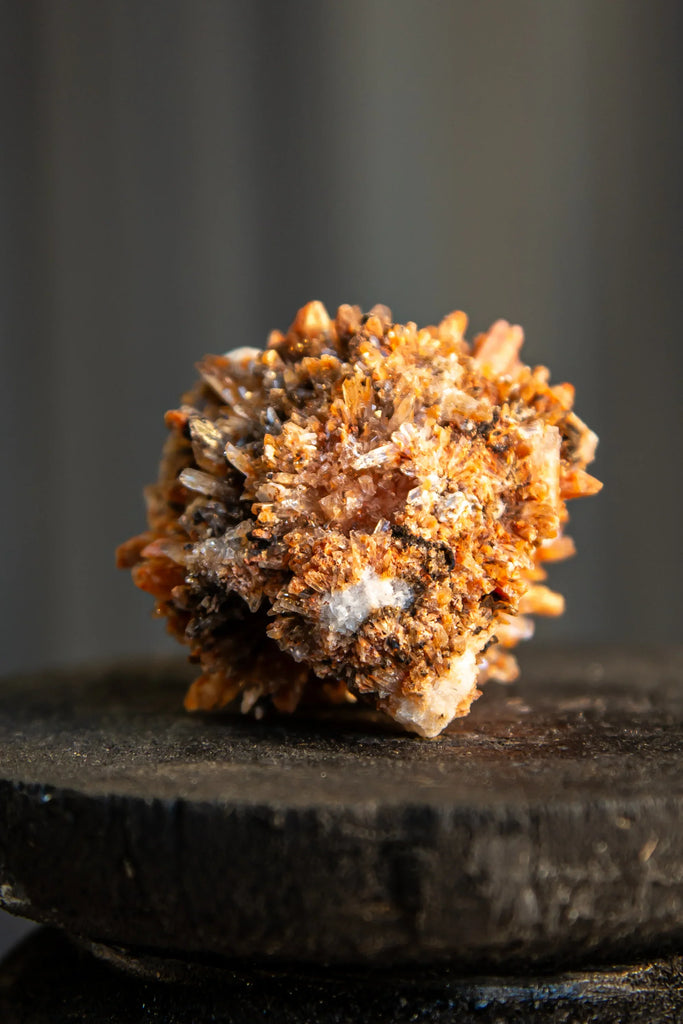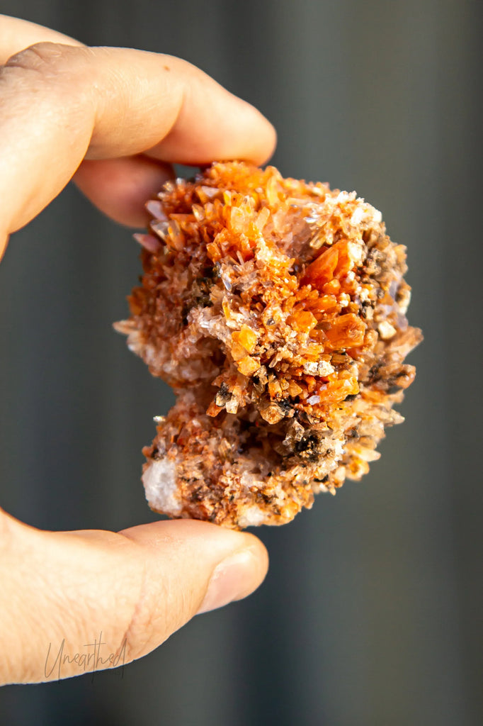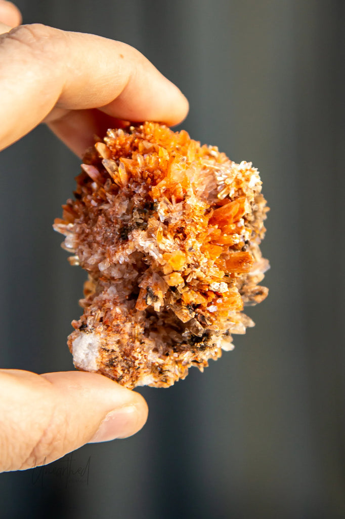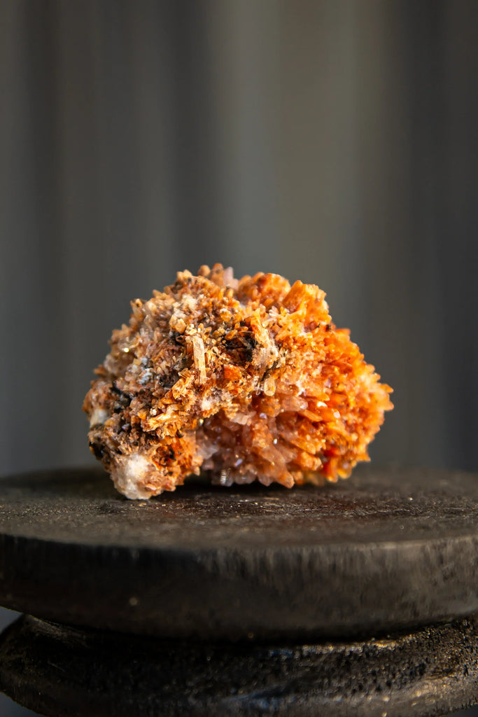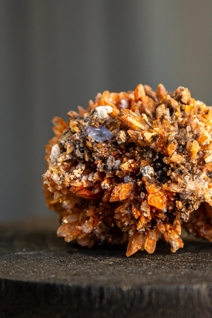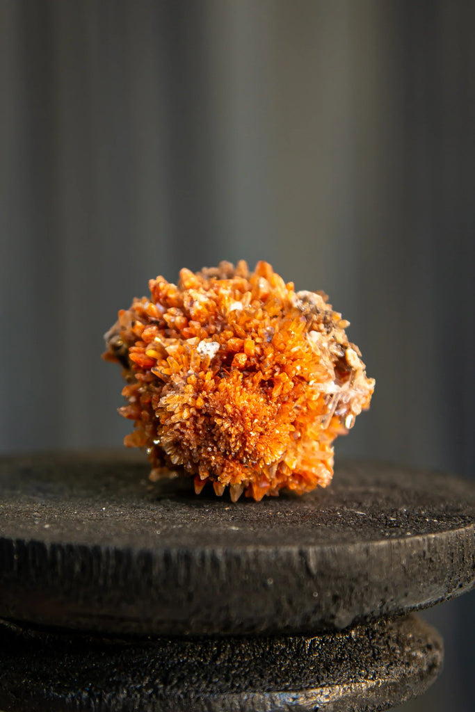 Creedite is a rare hydroxylhalide mineral typically found in hydrothermal veins. It often forms radiating crystal sprays in orange, purple, white, or colourless varieties. First discovered in Creede, Colorado (yep, that’s where the name comes from), it’s now famously sourced in Mexico—especially the bright orange and violet clusters from Chihuahua. Its fragile, needle-like crystals are as delicate as they are dazzling, so handle with care!