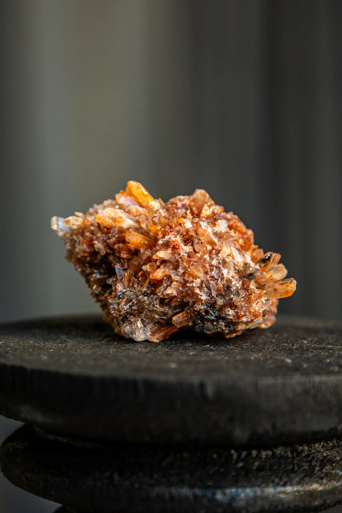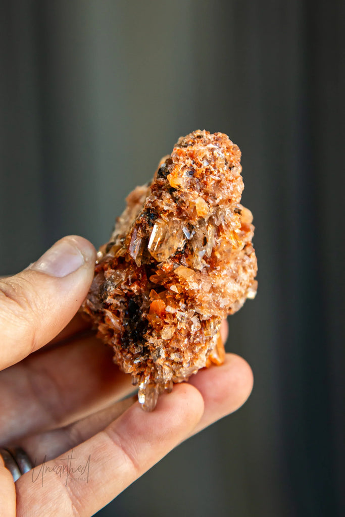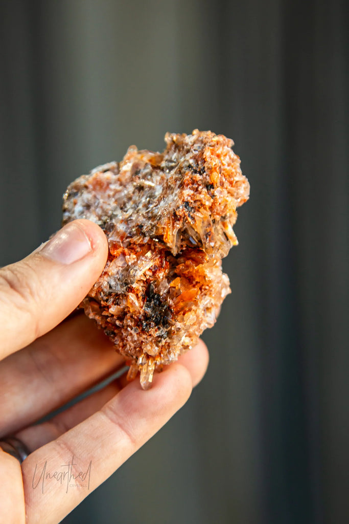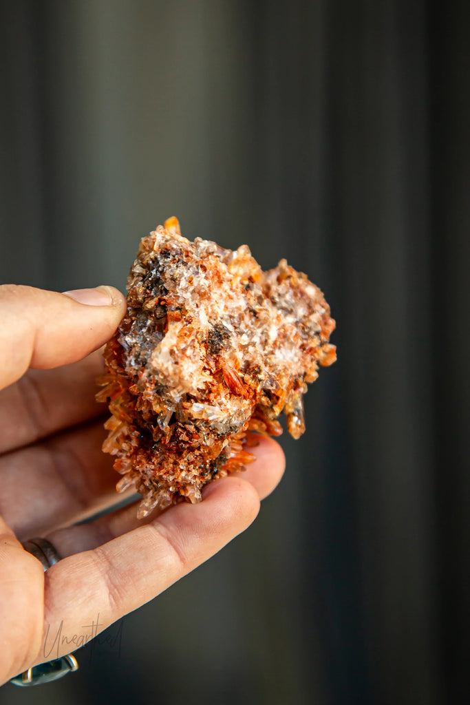 Creedite is a rare hydroxylhalide mineral typically found in hydrothermal veins. It often forms radiating crystal sprays in orange, purple, white, or colourless varieties. First discovered in Creede, Colorado (yep, thatās where the name comes from), itās now famously sourced in Mexicoāespecially the bright orange and violet clusters from Chihuahua. Its fragile, needle-like crystals are as delicate as they are dazzling, so handle with care!