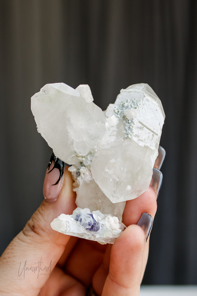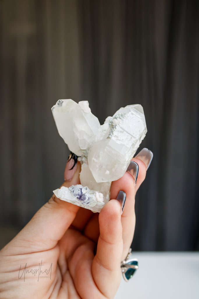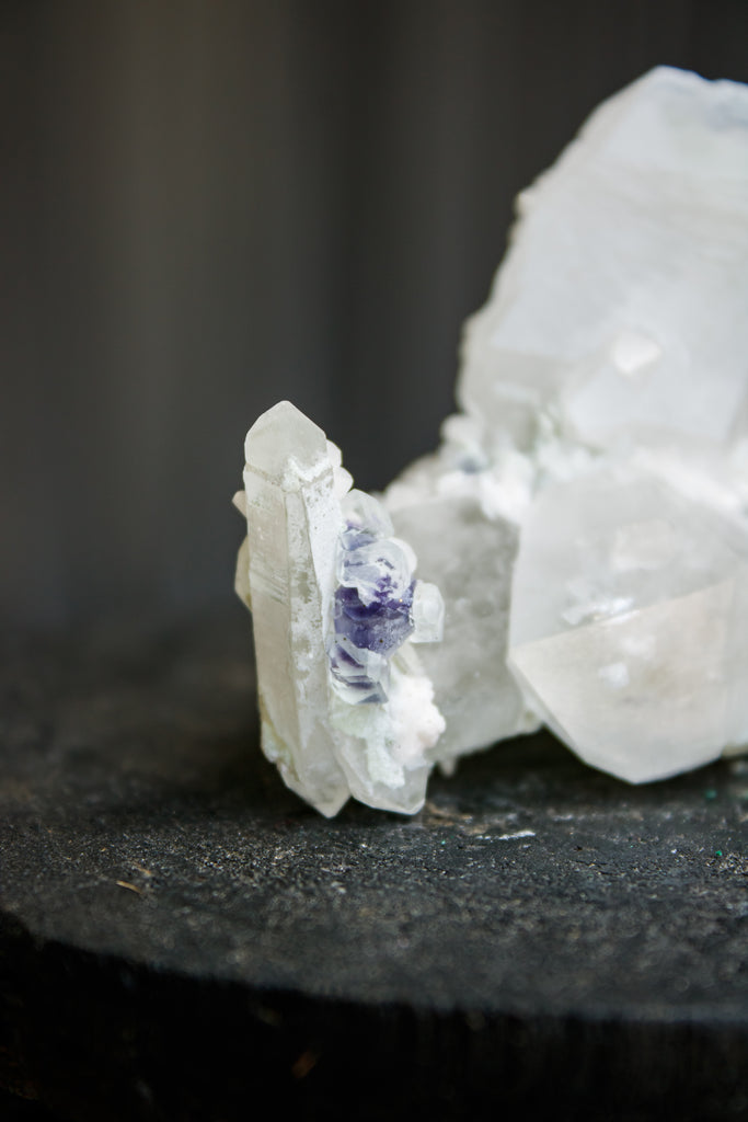 Purple Fluorite and Calcite on Quartz Specimen | Collector's Piece