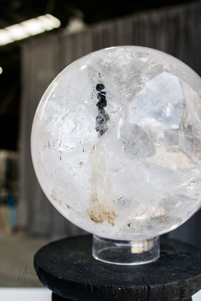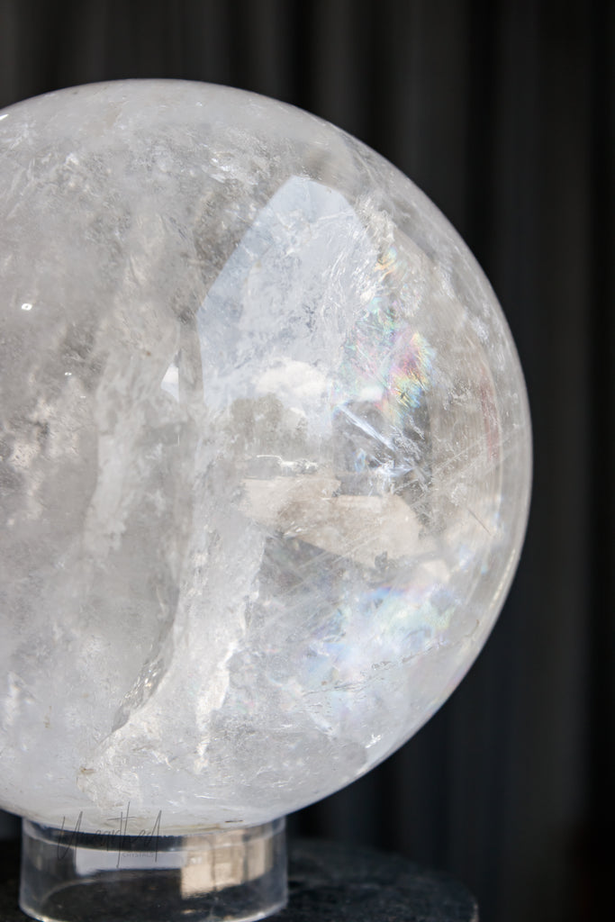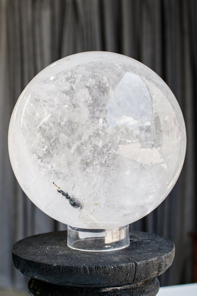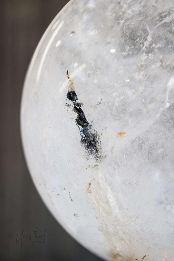 Clear Quartz Sphere with Specularite Inclusions | Statement Piece