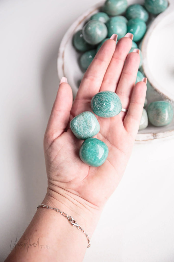 Amazonite is like a cool, calming breeze for your soul. With its serene shades of turquoise and seafoam green, this stone helps you speak your truth, handle emotions with grace, and keep your energy balanced—no drama allowed.