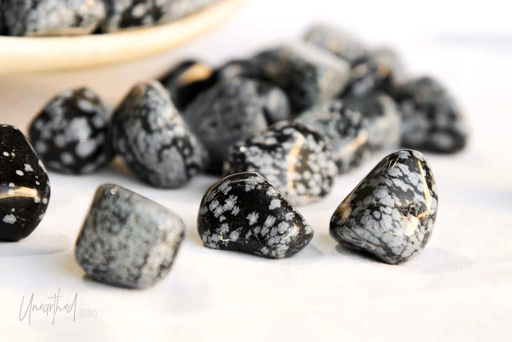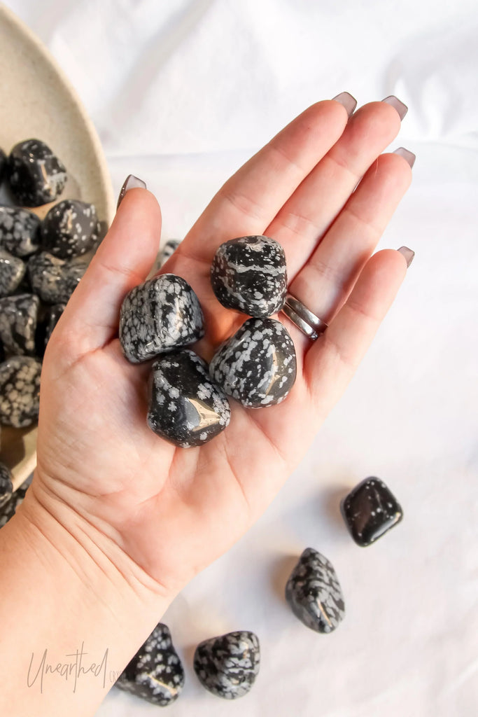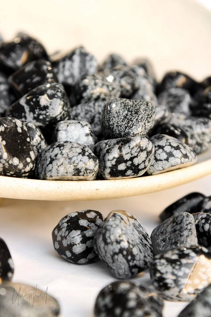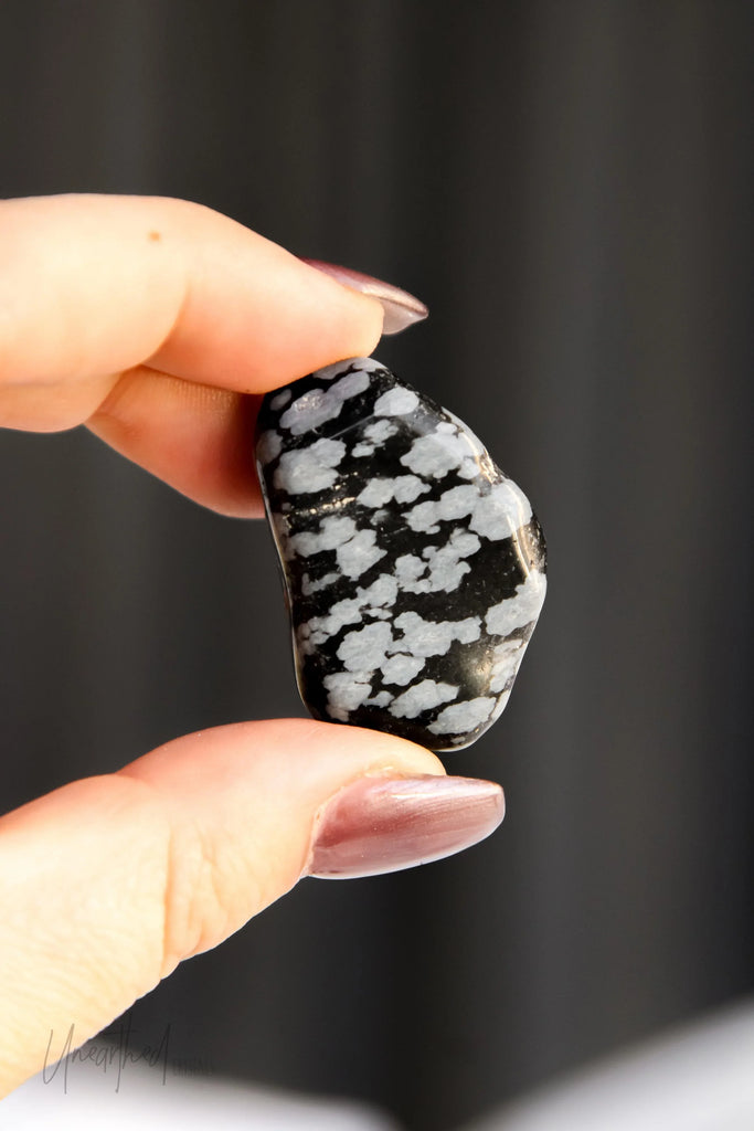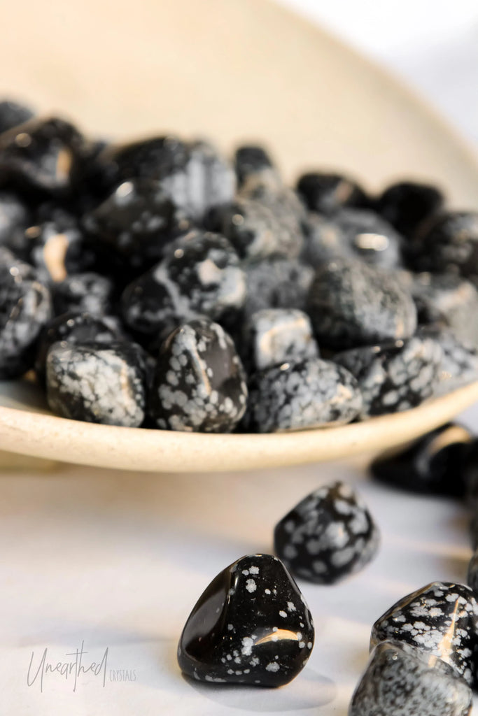Volcanic in origin, Obsidian is a very grounding and protective stone.Ā Working with Snowflake Obsidian can help to draw things to the surface; love, anger, secrets ā whether positive or negative, the gentle energy of Snowflake Obsidian promotes a sense of calm and centring, making it way easier to deal with any truly shitty emotions that float up with the good stuff.Ā Obsidian is often used for healing and releasing energy blockages and has a tendency to work quickly to move truths to the surface to be resolved.Ā It is used as a great cleanser of negative energies, helping to remove not only negativity from external factors, but also from the bearerās own emotions, anger, jealousy, greed, resentment, etc.