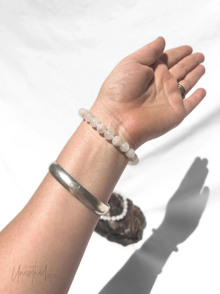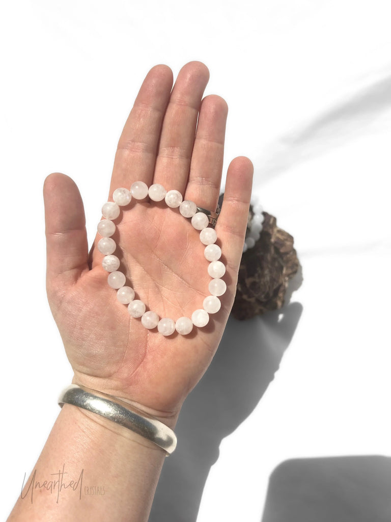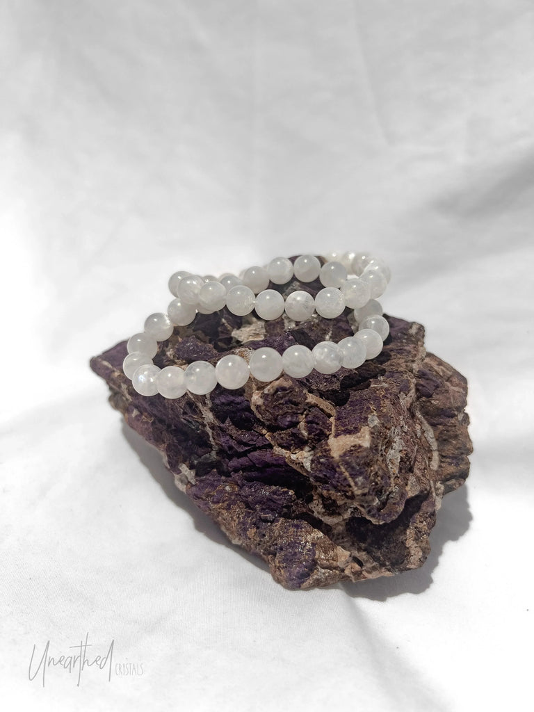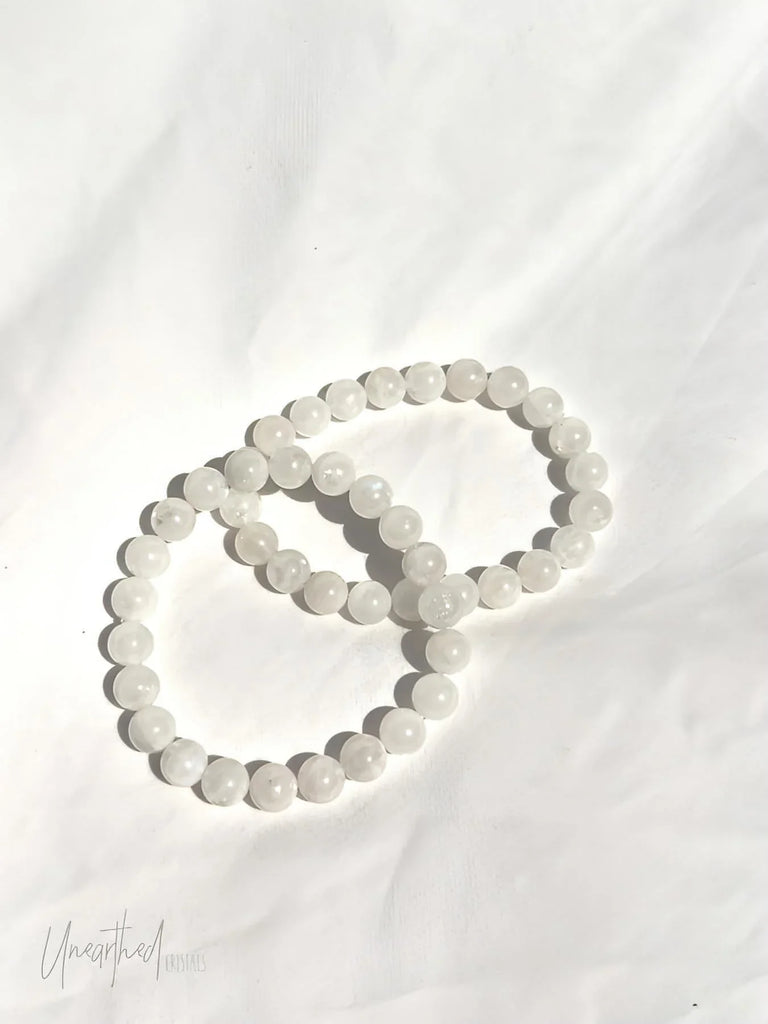 White Moonstone Bead Stretch Bracelet | 8mm