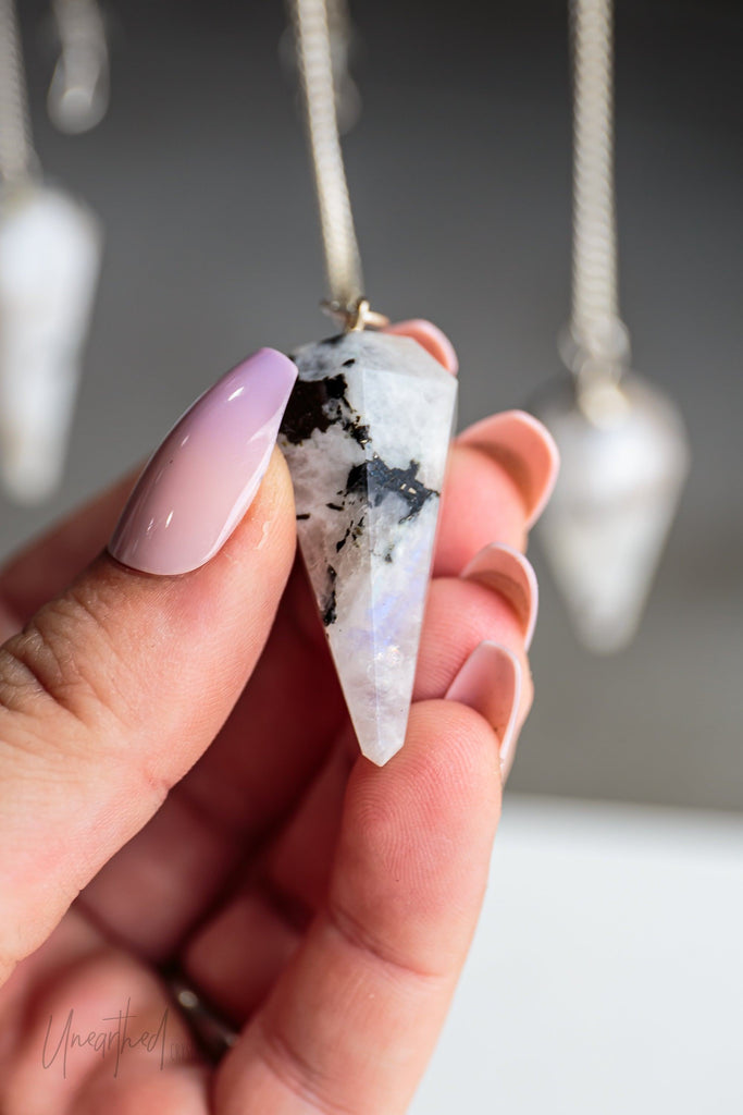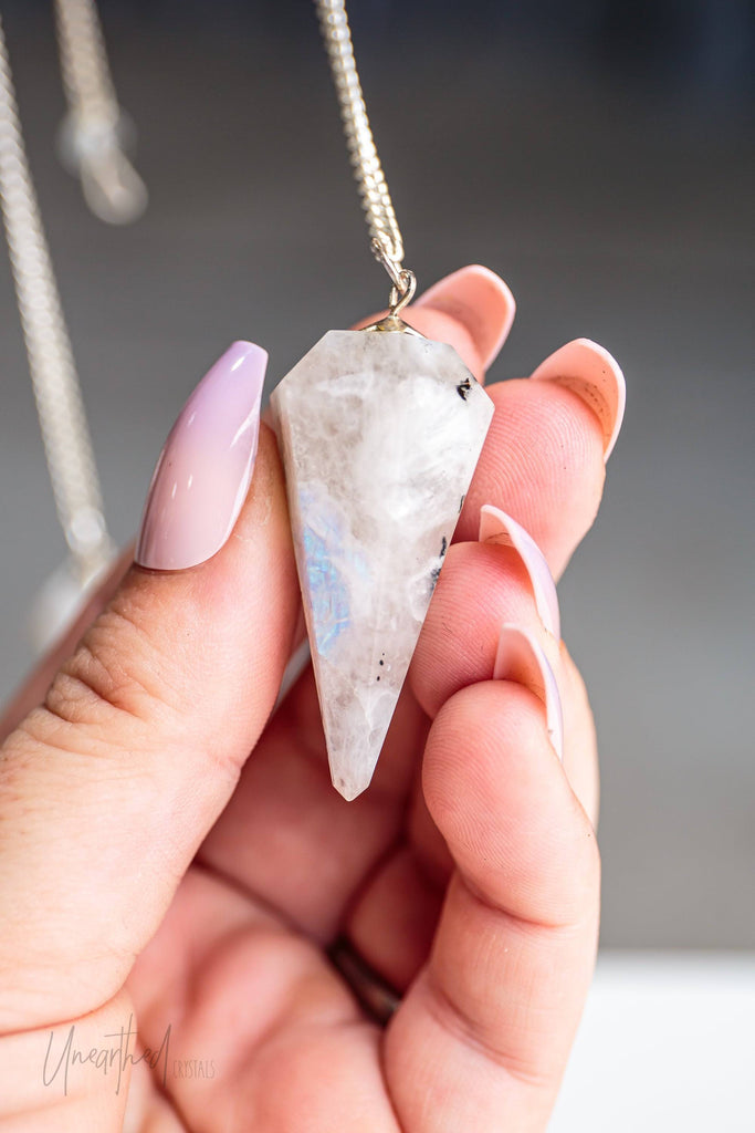 Unlock your subconscious with a classic divination tool. Pendulums have been used in mystical practices for centuries - the perfect way to connect with your inner wisdom. With its timeless appeal and elegant faceted design, start your journey today.