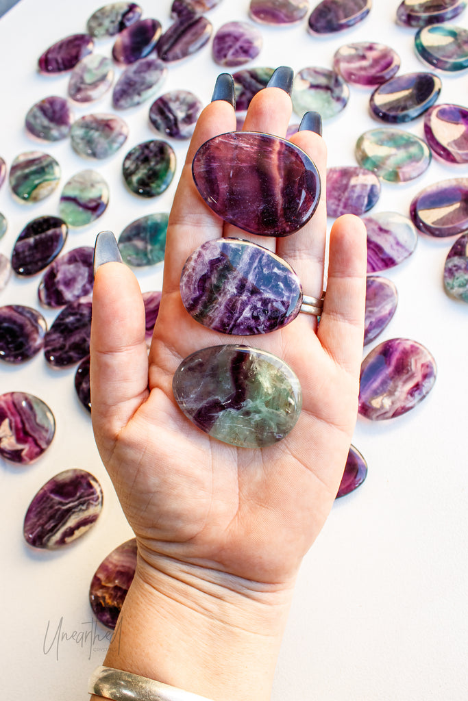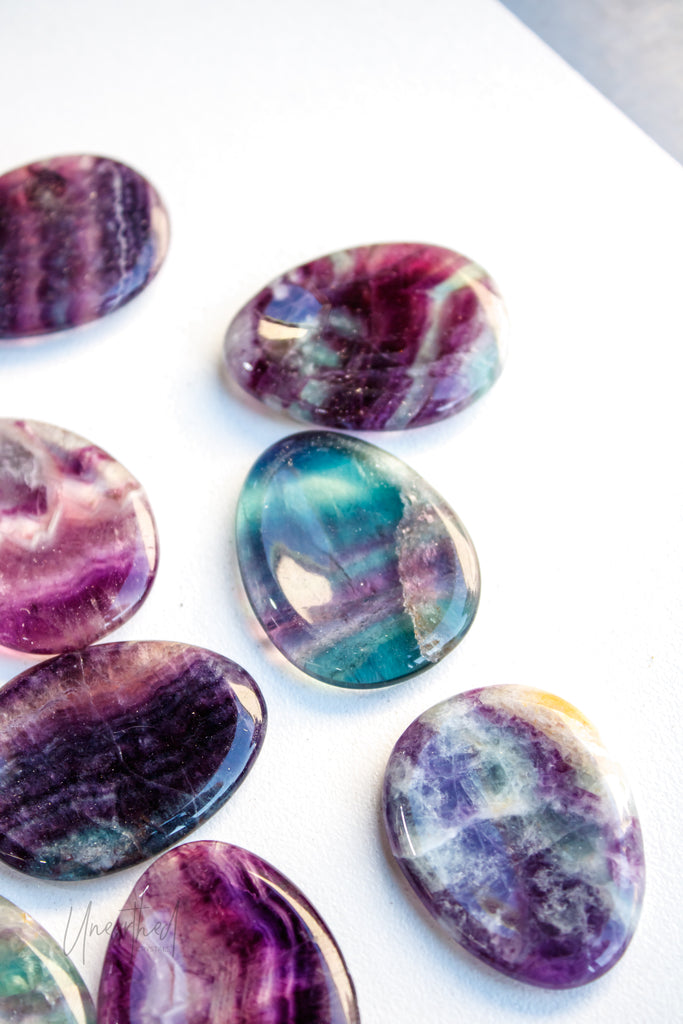 Fluorite is also protective, shielding against negative energy and EMFs. Whether you’re drawn to a rainbow tower that glows with colour, a soothing palm stone, or a carved sphere for your workspace, this collection has the perfect piece to bring order to your energy.