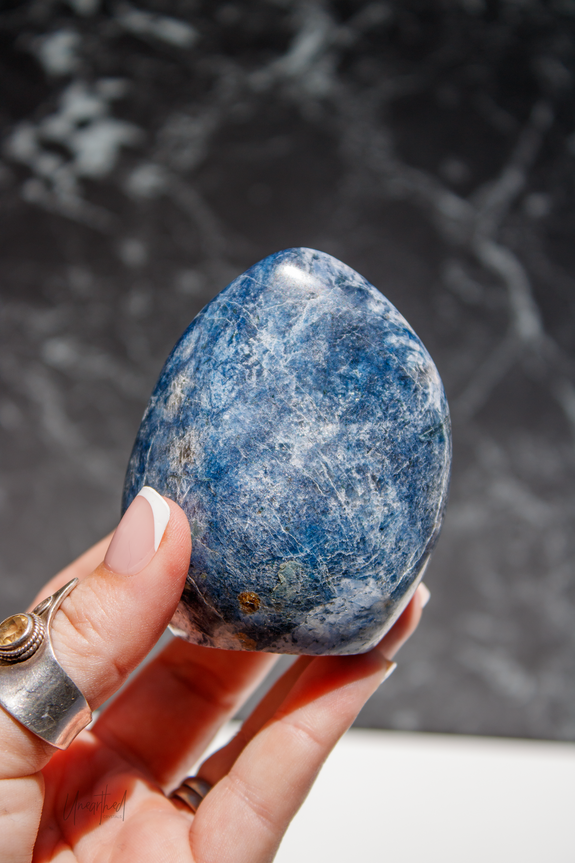 Dumortierite is often mistaken for Sodalite or Lapis Lazuli due to its deep blue hues, but it’s actually a fibrous aluminum borosilicate mineral with a completely different crystal structure. It can even be found inside Quartz, creating beautiful, dreamy blue inclusions.