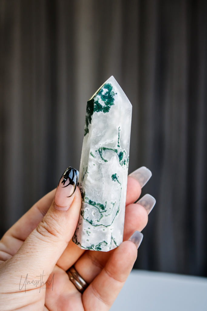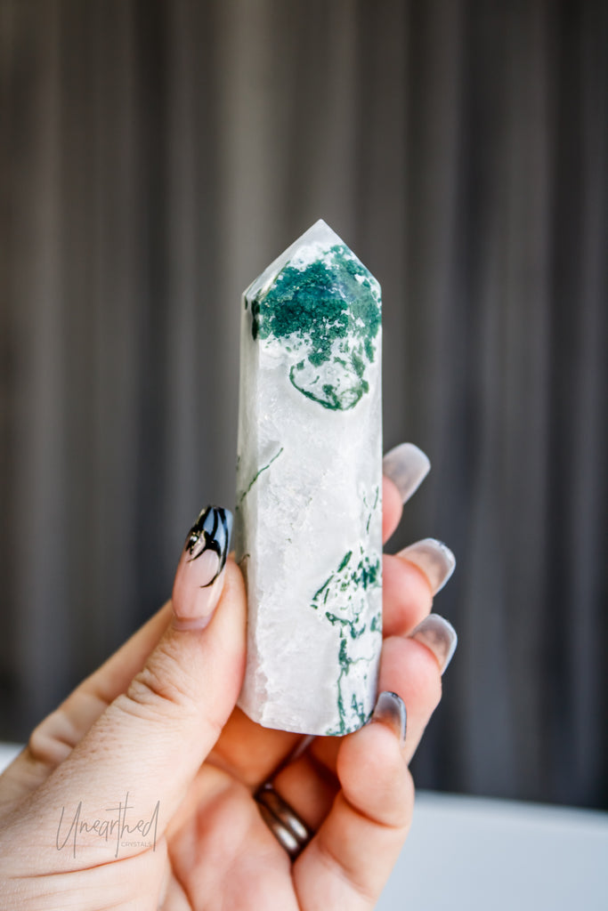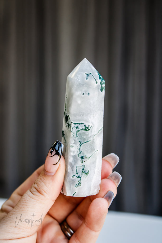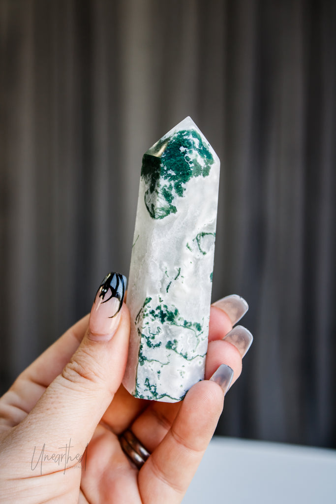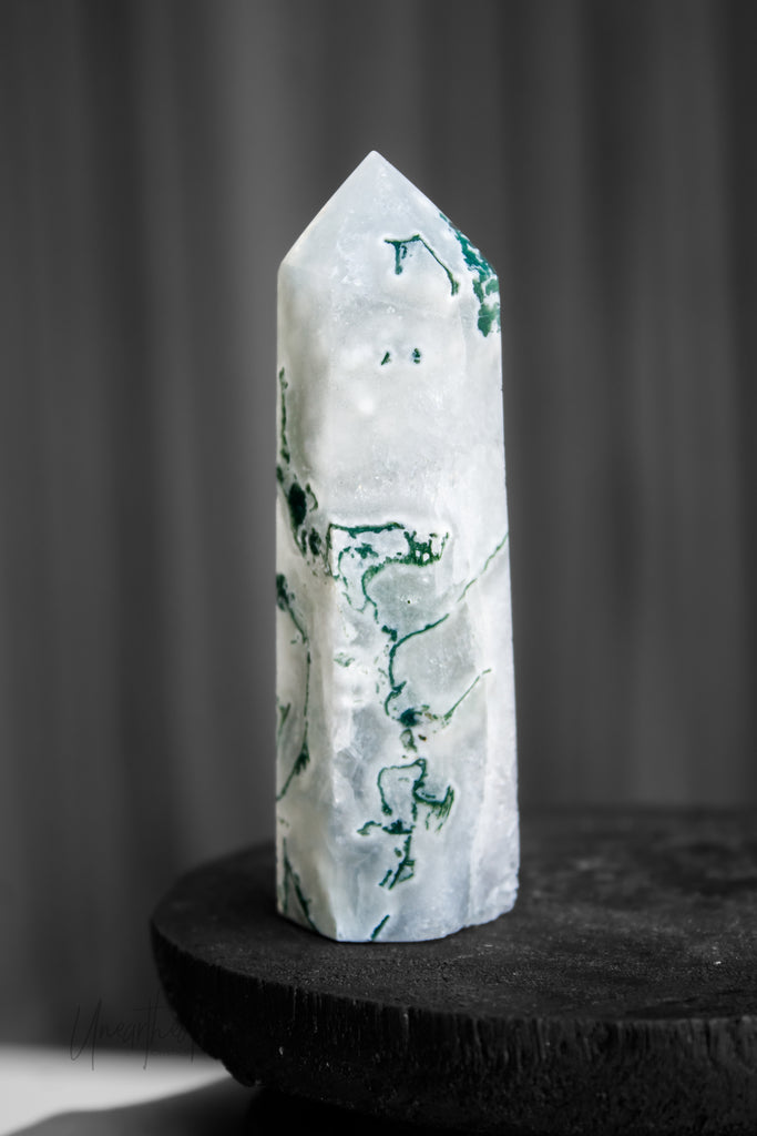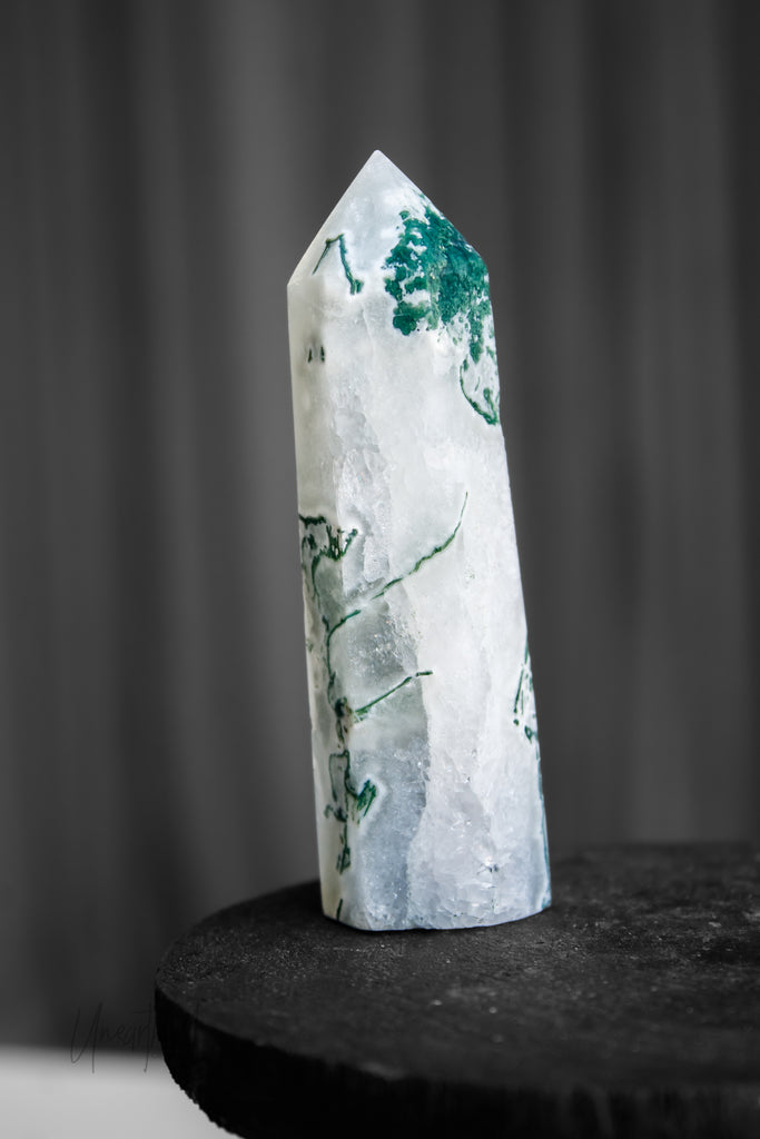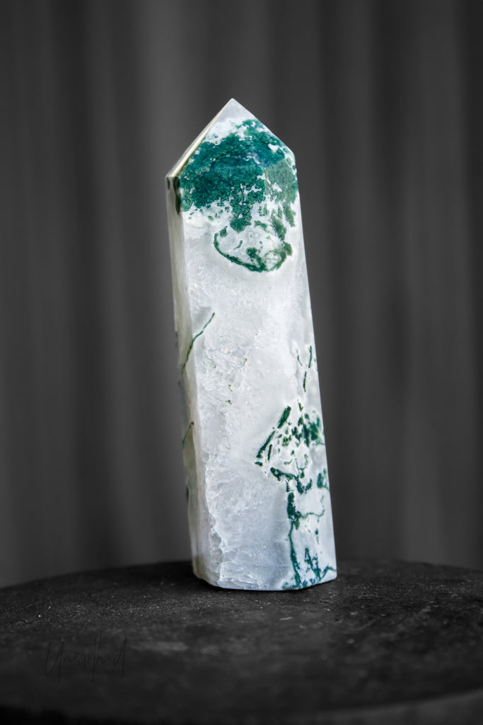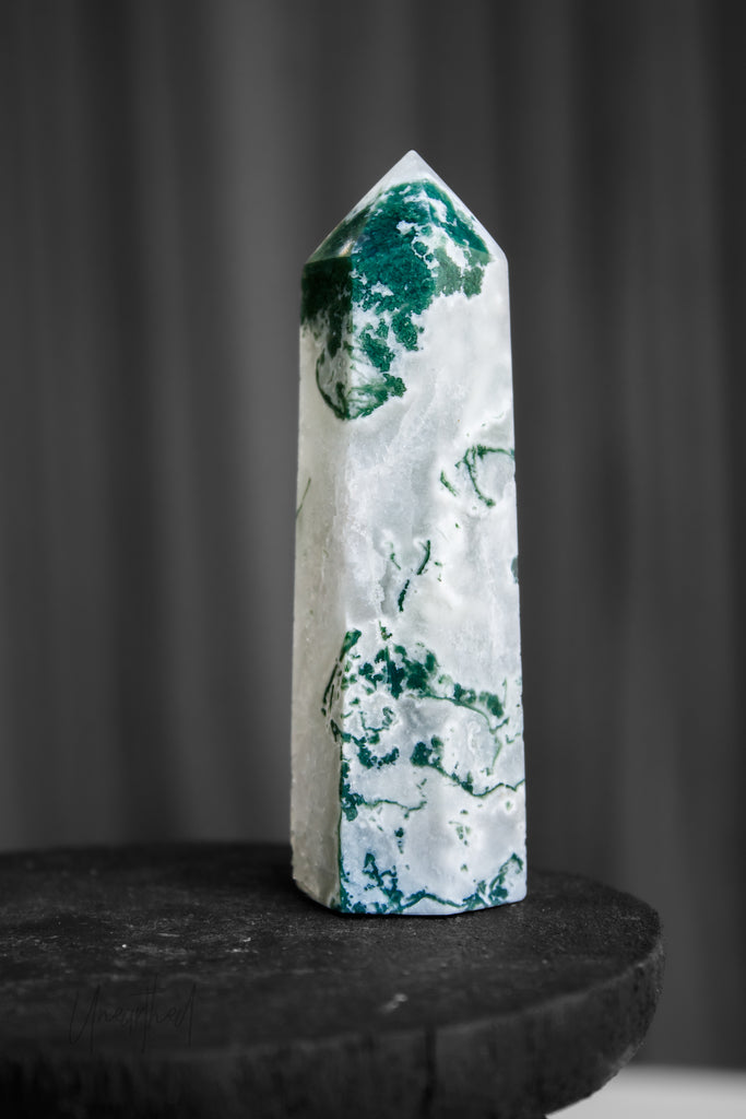 Scientifically, Moss Agate isn’t a true agate but a form of chalcedony with dendritic inclusions that look like moss or ferns. This natural artwork is as unique as it is mesmerising, with no two pieces ever the same.