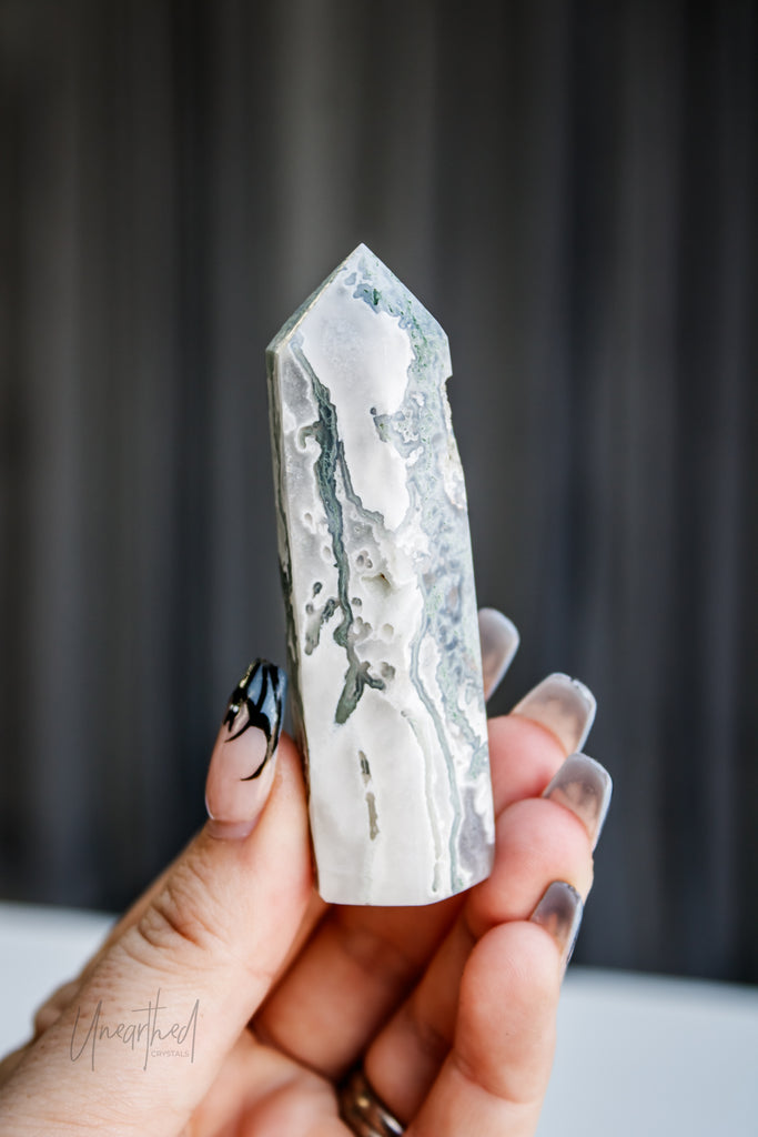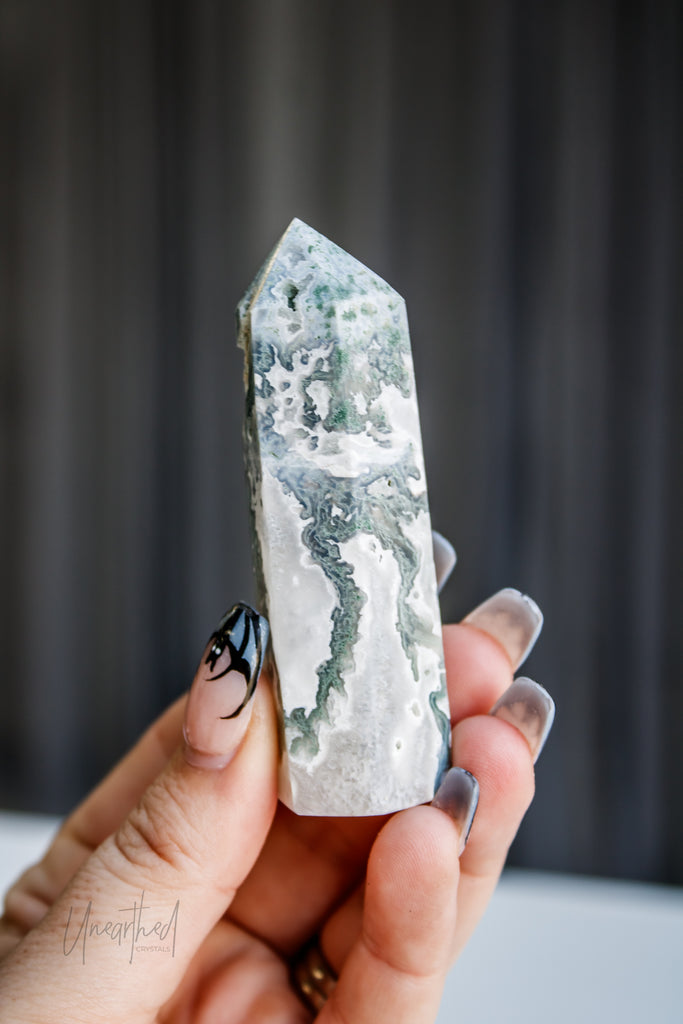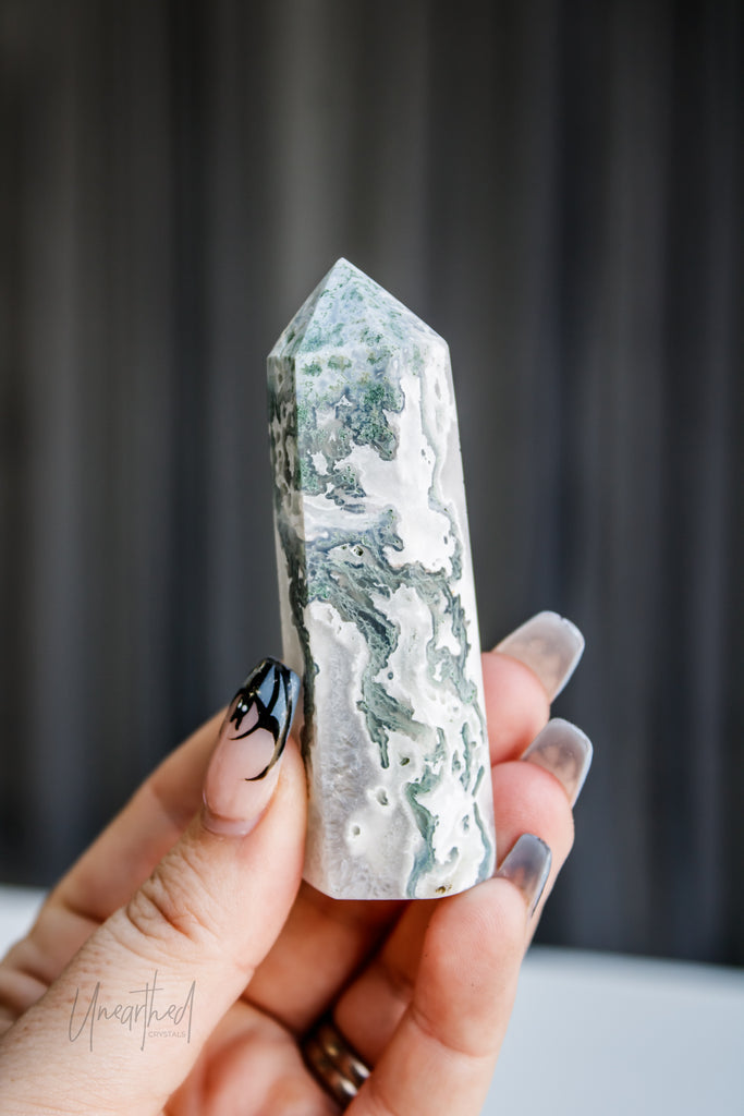 Scientifically, Moss Agate isn’t a true agate but a form of chalcedony with dendritic inclusions that look like moss or ferns. This natural artwork is as unique as it is mesmerising, with no two pieces ever the same.