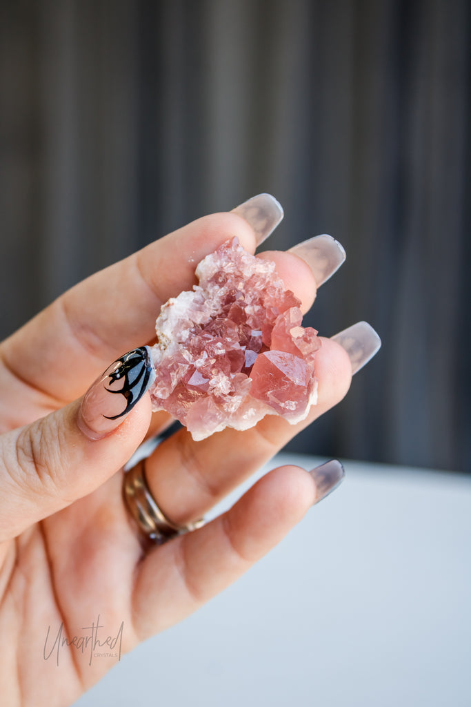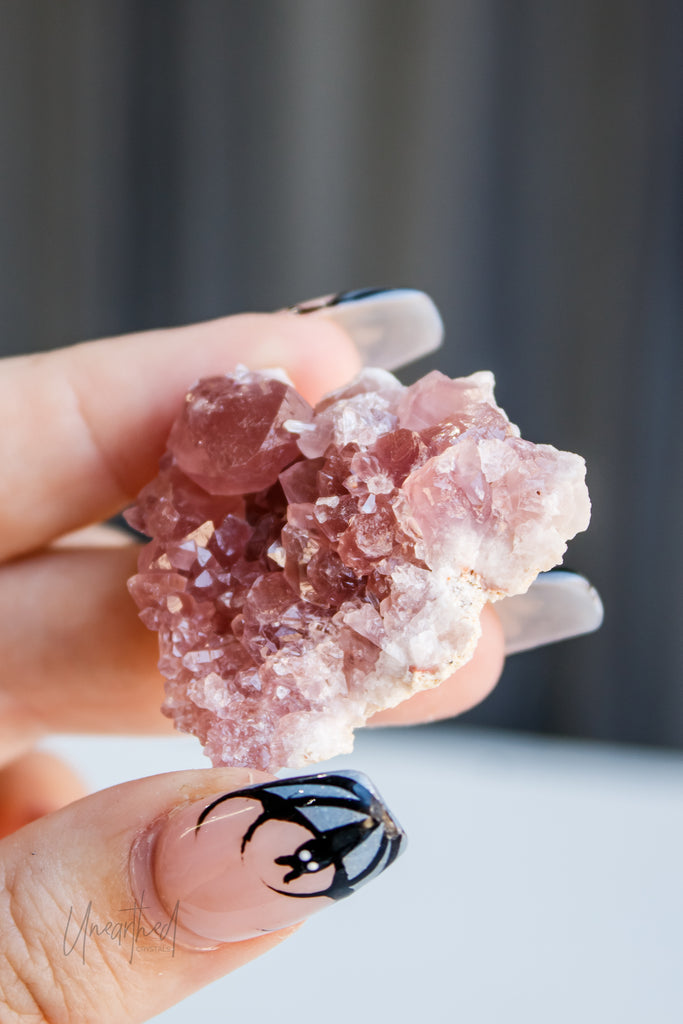 Pink Amethyst gets its dreamy hue from trace amounts of hematite or iron in its crystalline structure. Unlike Rose Quartz (which is opaque), Pink Amethyst forms in geodes and druzy clusters, just like purple Amethyst—but with a sweeter, rosier vibe.