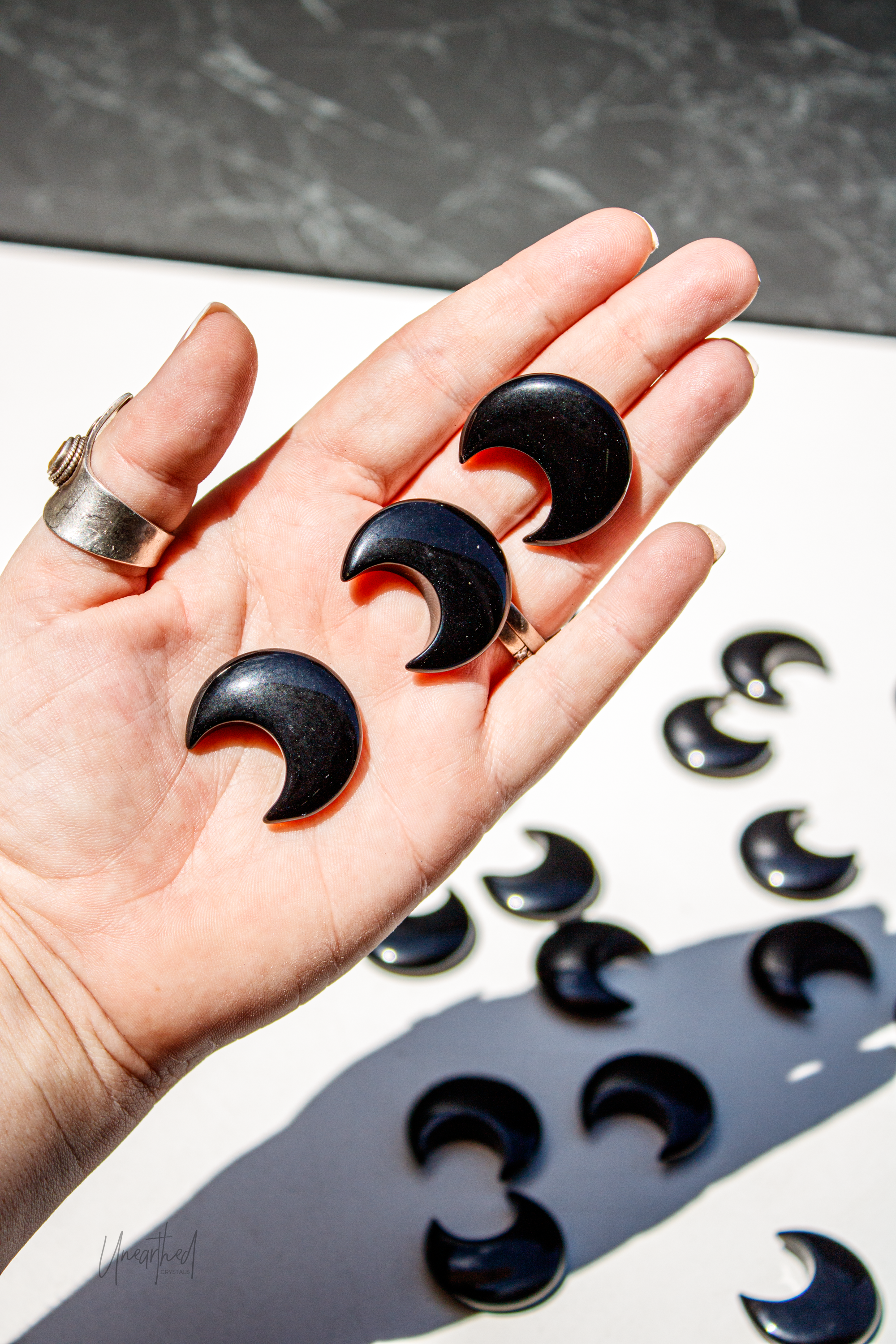 Black Obsidian Crescent Moon Carving | 3cm