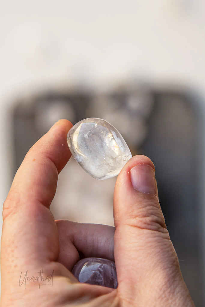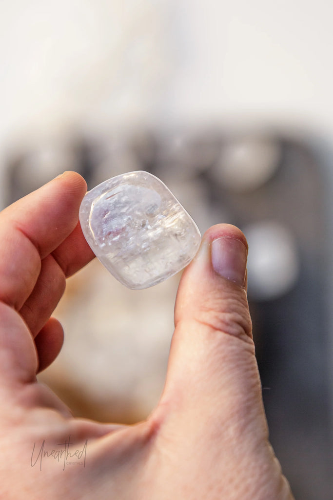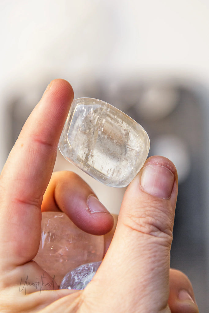 Optical Calcite, also known as Iceland Spar, is the queen of seeing through the BS—both external and internal. With its glassy transparency and natural double refraction (yes, it literally splits light into two beams), this high-vibe beauty is all about truth, clarity, and energetic cleansing. Think of it as your spiritual windscreen wiper, clearing foggy thinking and making space for aligned action.