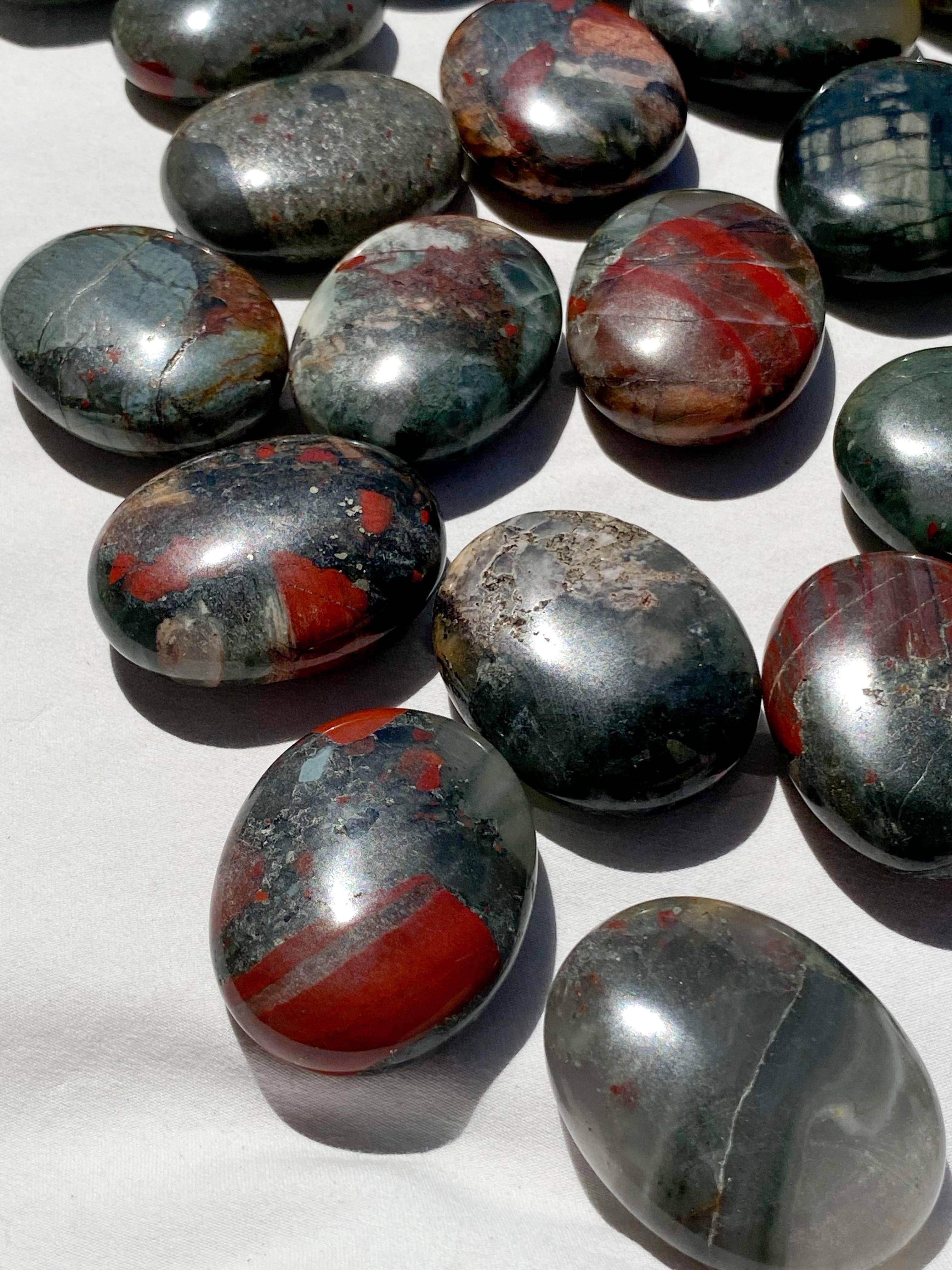 Spiritually, Bloodstone has a strong connection to vitality and strength. Its energy can revitalise your aura, help you align with your higher purpose, and empower you to break through personal barriers. It also helps ground and protect you, making it great for spiritual practices like meditation or energy work.