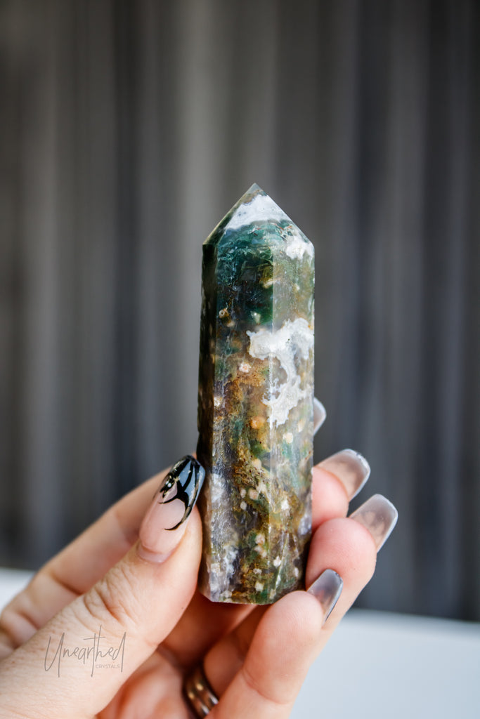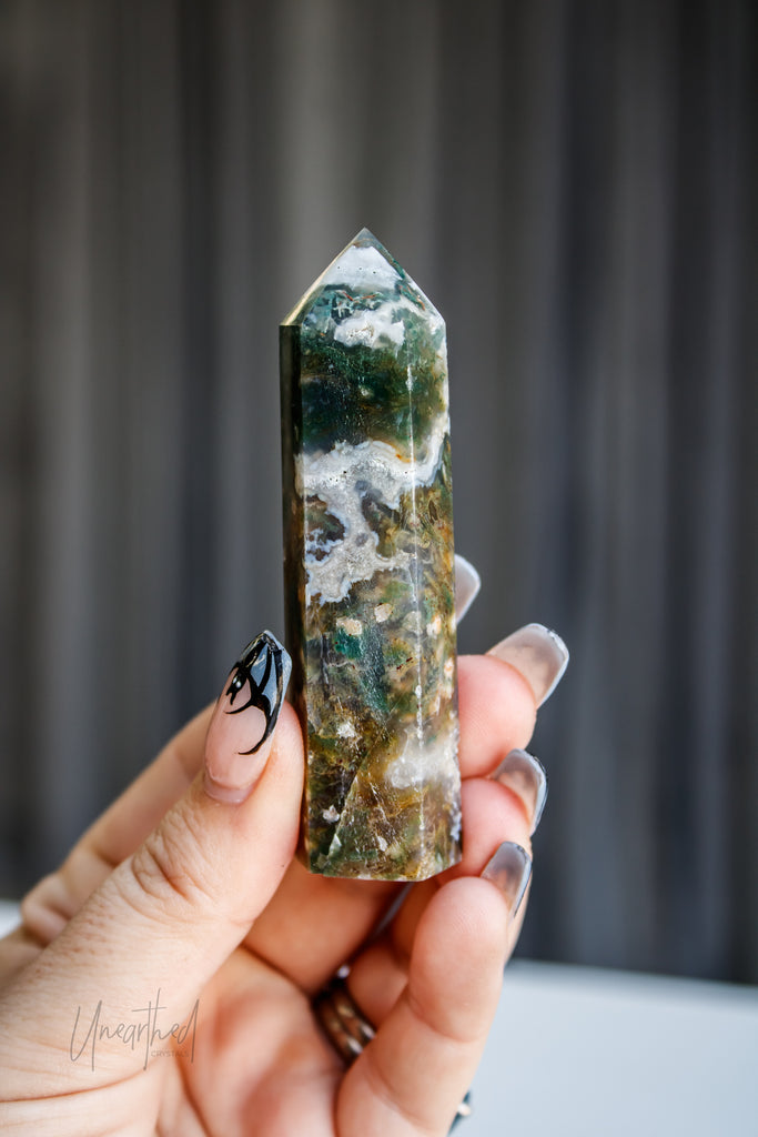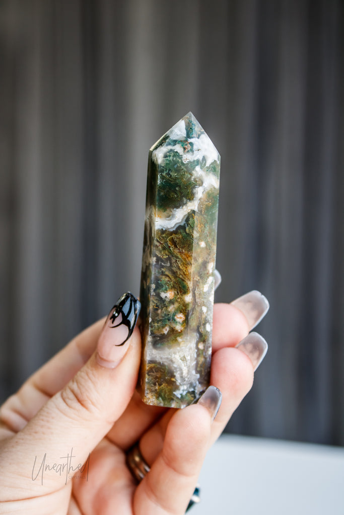 Scientifically, Moss Agate isn’t a true agate but a form of chalcedony with dendritic inclusions that look like moss or ferns. This natural artwork is as unique as it is mesmerising, with no two pieces ever the same.