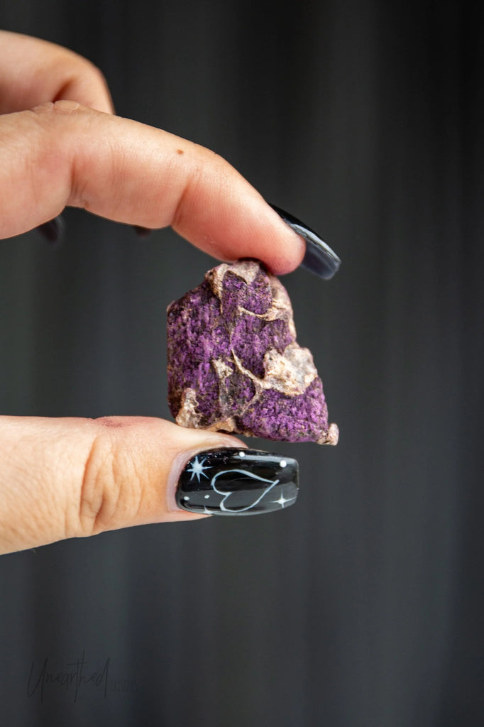 Purpurite stimulates the Crown Chakra and connects you to a higher consciousness. It makes you more aware of your own mind and the energy of the universe, allowing you to open yourself to truth in all ways. Purpurite helps you to access and trust your insight.